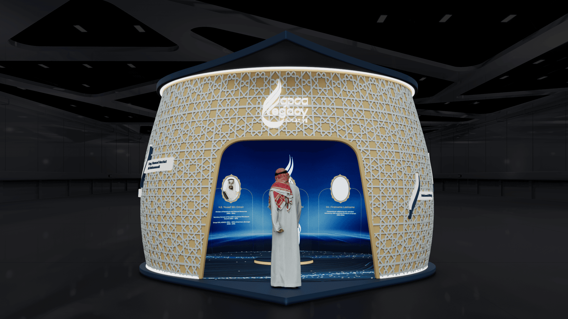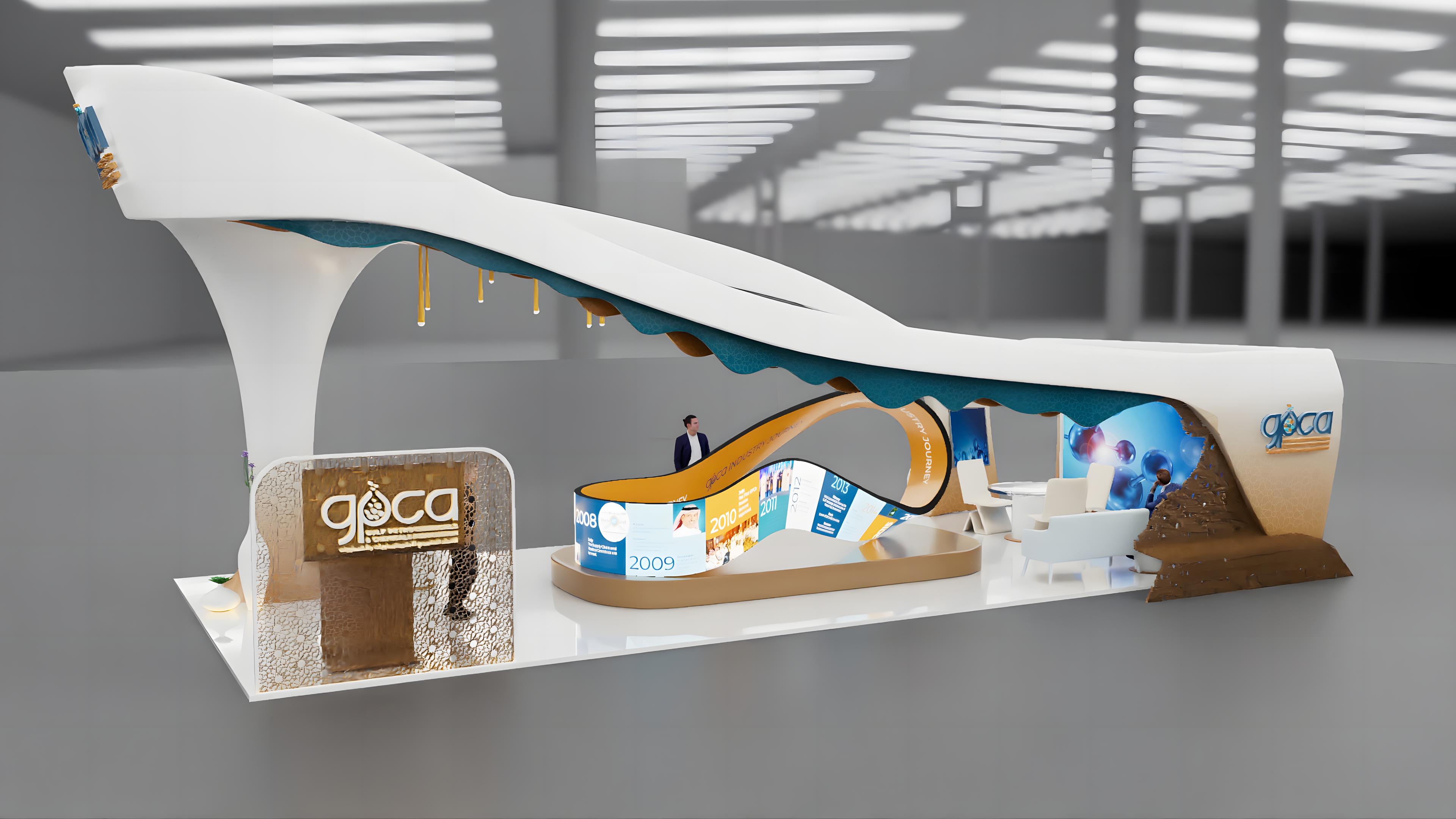 The 18th GPCA Gala Dinner harmonizes tradition with innovation. By combining the organic curves of the timeline exhibits with the precise, illuminated geometry of the main stage, we created an immersive atmosphere that honors the "Legacy" of the past while spotlighting the "Impactful Transformation" of the future.
